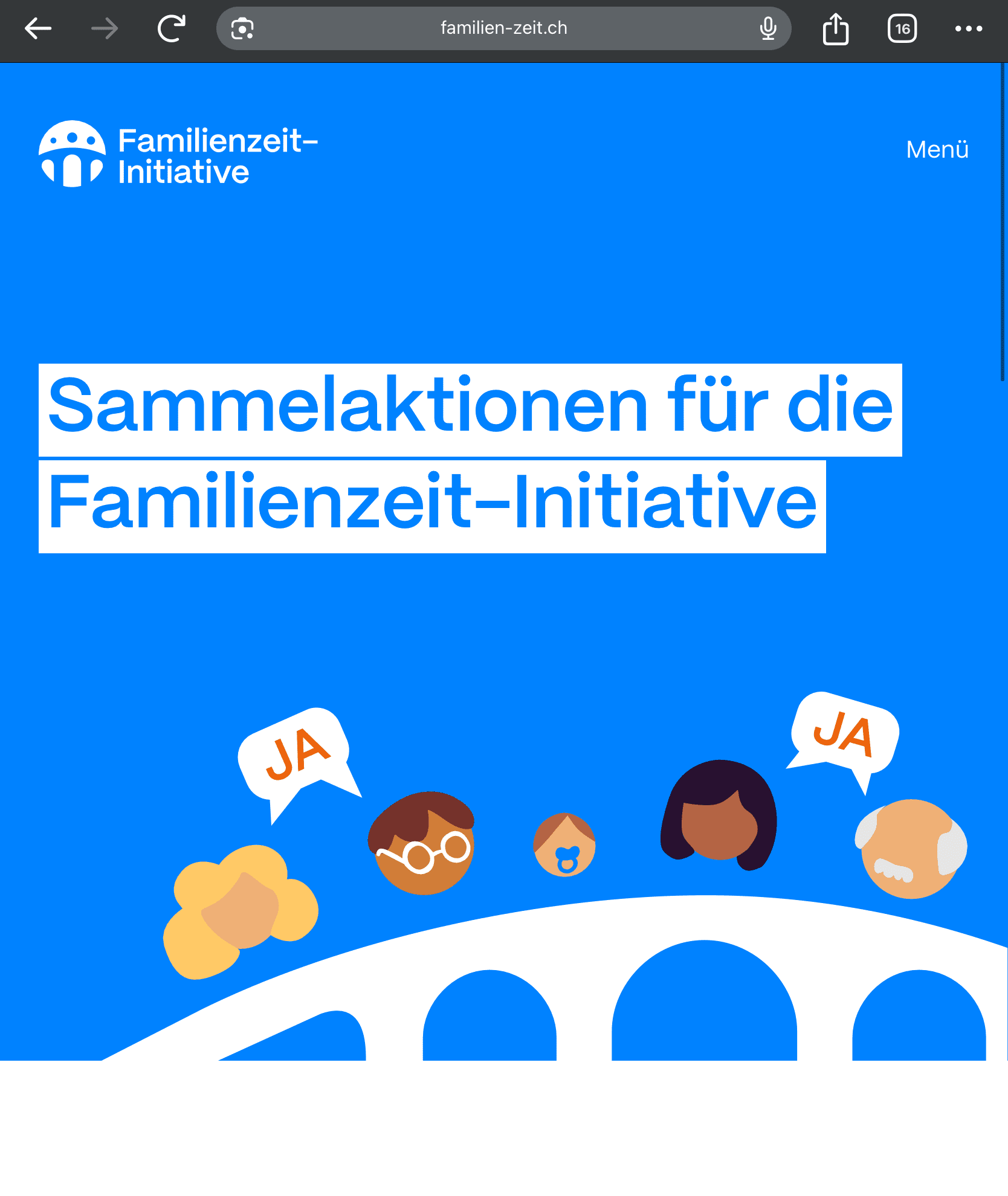 Die GLP unterstützt die Familienzeit-Initiative – eine konkrete, liberale Lösung für mehr Fachkräfte, Gleichberechtigung und Vereinbarkeit. Keine theoretischen Abhandlungen, Sitzungen und Konzepte sondern «hands on»-Politik: Jetzt geht es darum, gemeinsam Unterschriften zu sammeln und die Initiative auf die Strasse zu bringen.Â