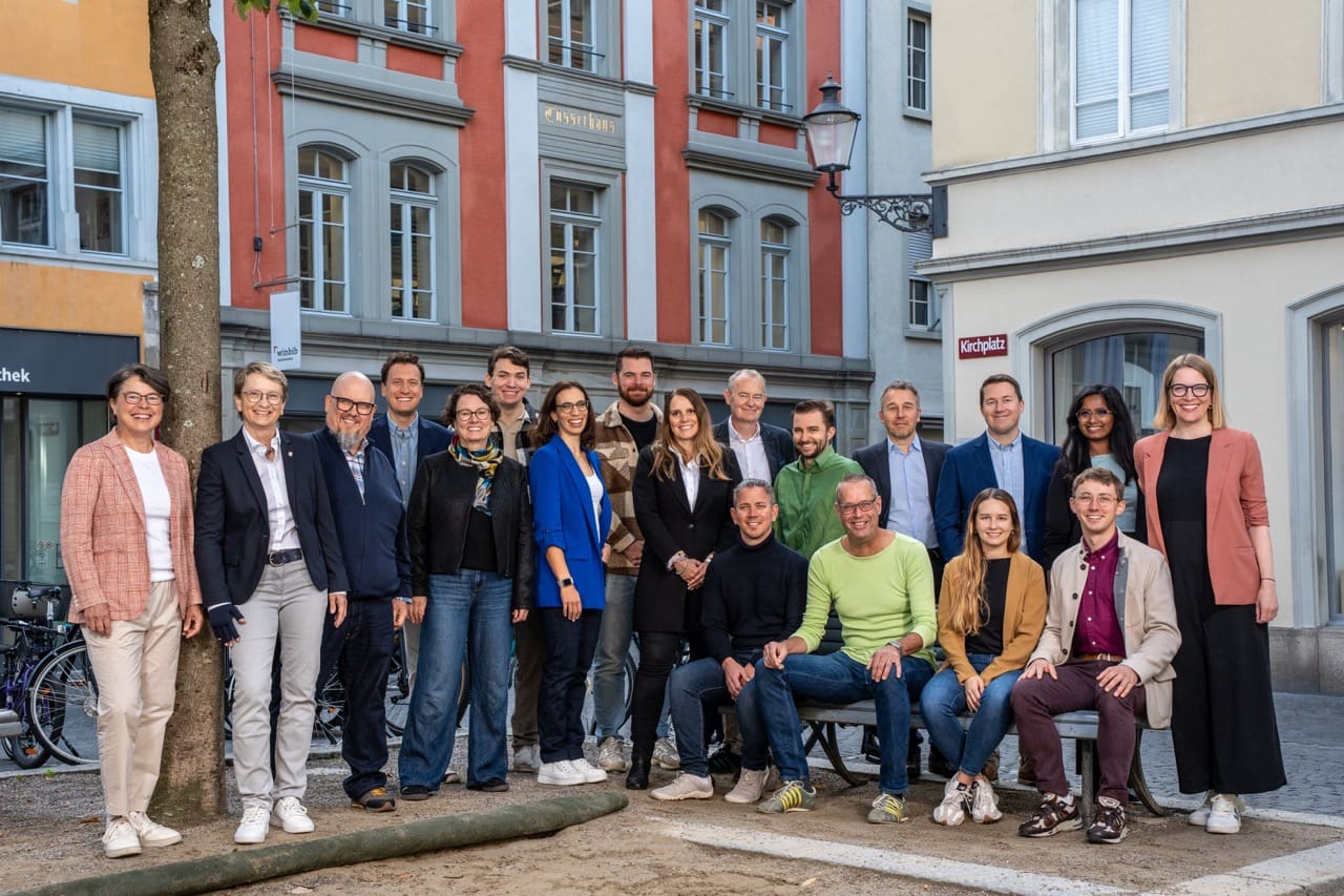 Nominierten für die Wahlen 2026: (1. Reihe v.l.) Co-Parteipräsident Jan Guddal, Karin Hürlimann, Urs Glättli, Co-Parteipräsidentin Annetta Steiner (2. Reihe v.l.) Priya Yogalingam, Gabriel Tanner, Nicole Holderegger, Fraktionspräsident Markus Nater, Nora Ernst, Lukas Rupper, Danja Marazzi (3. Reihe v.l.) Desirée Egli, Beatrice Vetsch Hofmänner, Edzard Paulussen, Nina Patrizia Maute, Laura Frei, Lorena Furter (4. Reihe v.l.) Matthias Beurer, Patrick Ammersinn, David Noser, Nicola Flury